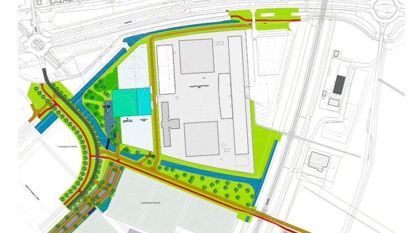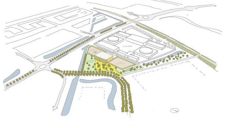 In het ontwerp is een tweede ontsluitingsweg opgenomen, specifiek voor de EBZ. Deze komt te liggen tussen de zittingszaal en de PI en sluit aan op de Larserdreef via de bestaande PI-toegang. Zo kunnen transporten van verdachten worden gescheiden van het reguliere verkeer en wordt de verkeersveiligheid in de wijk beter gewaarborgd.