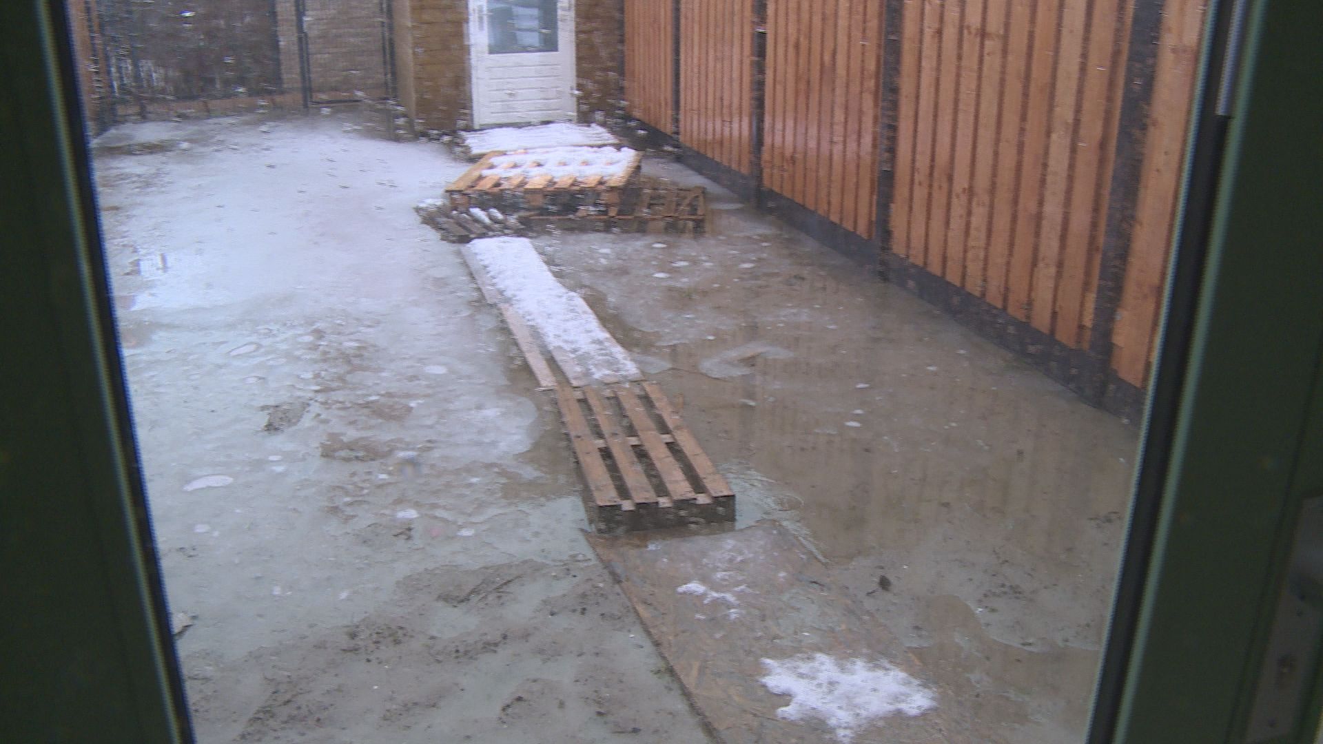"Over de vloer mag het natuurlijk niet komen, want dan is er echt iets mis." Dat een tuin door wateroverlast grotendeels onbruikbaar wordt, is volgens Kersemakers wel een serieus probleem. "Je koopt een tuin met een bepaald doel. Als je geen planten kunt aanbrengen of een deel kunt bestraten omdat alles te nat blijft, dan voldoet het simpelweg niet." Tuin na recente dooi