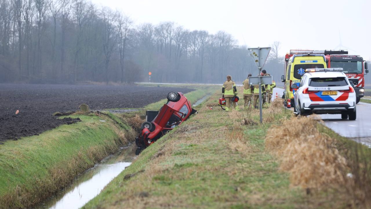 Bij twee verschillende ongelukken in de provincie zijn donderdagmiddag twee voertuigen in een sloot beland. Bij Rutten kwam een auto op de kop in het water terecht. Op de A6 bij Bant raakte een vrachtwagen van de weg en belandde in de sloot.