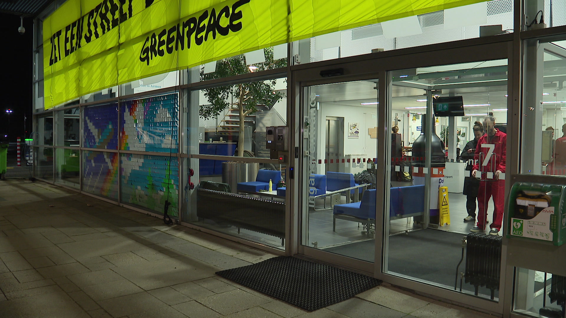 Door de bezetting van Greenpeace zijn alle vluchten geschrapt. Om die reden komt er ook bijna niemand naar het hoofdkantoor dat tevens ook de vertrekhal is van privévliegtuigen. Vanaf de Larserweg waar veel verkeer rijdt is het hoofdkantoor nagenoeg niet te zien.
