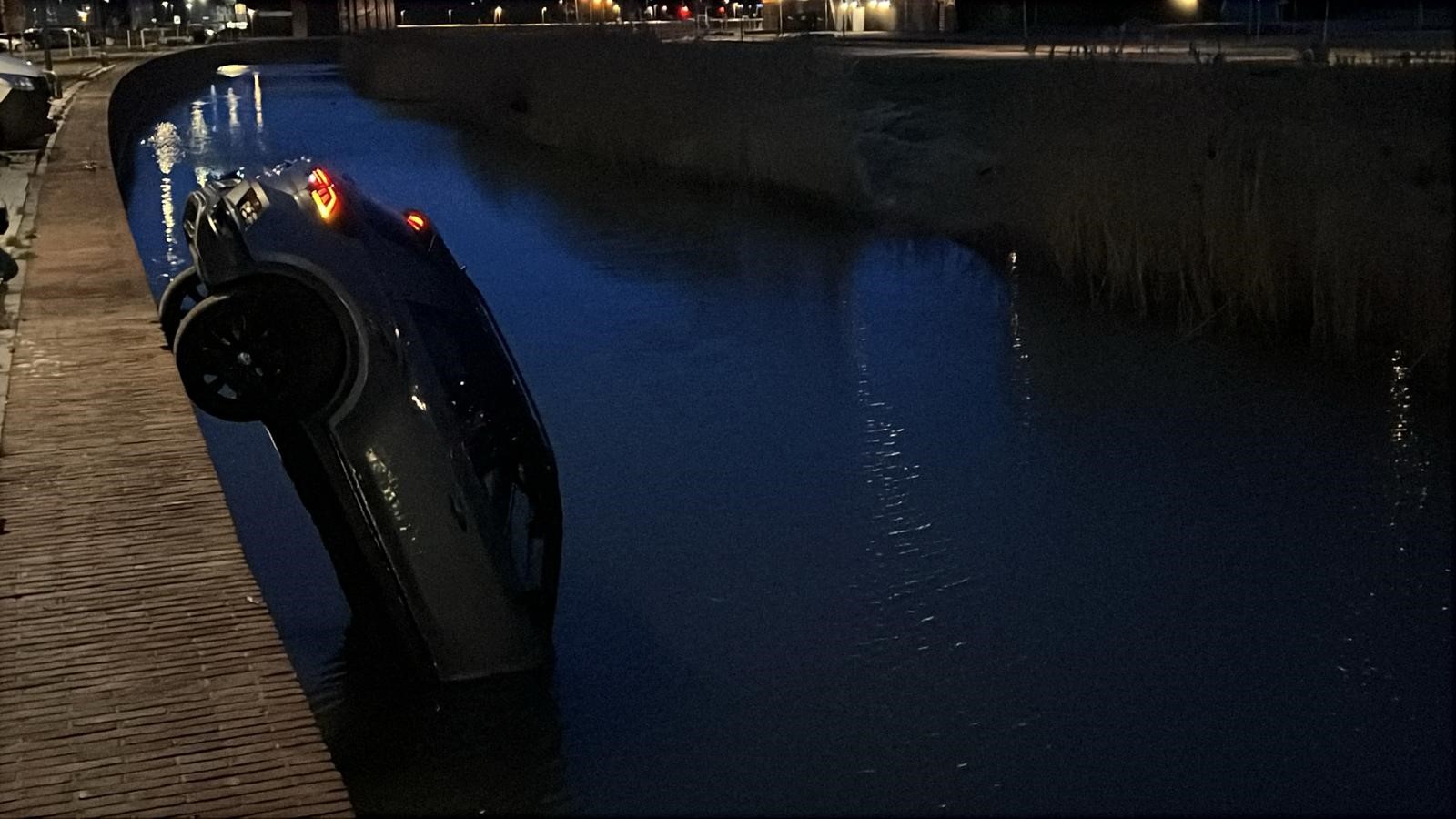 Een auto belandde zaterdagochtend rond 07.00 uur in het water aan de Griekenlandkade in Almere Poort. Het voertuig kwam met de neus in het water terecht.