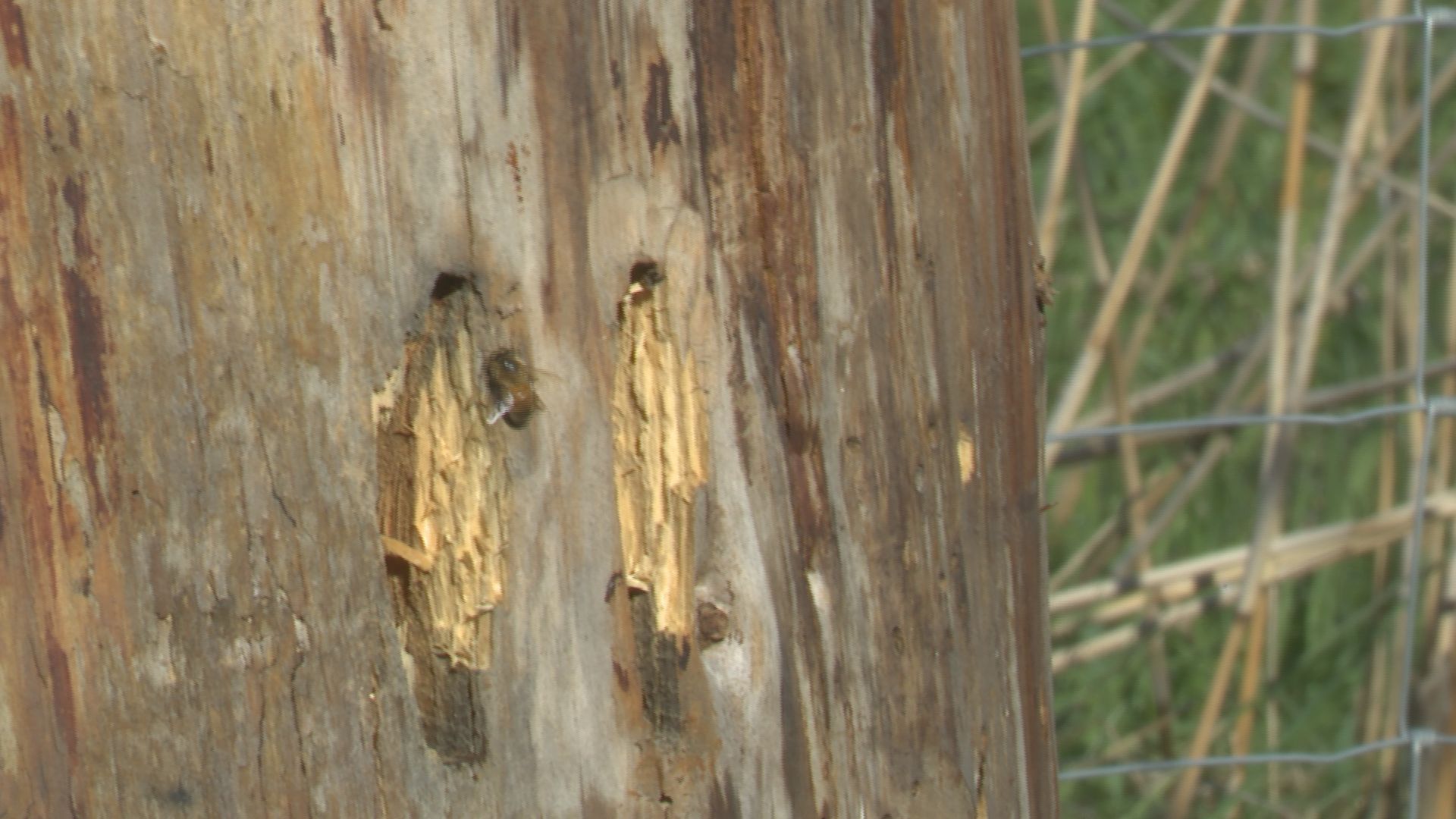 Op het terrein wijst Strijker op een boomstamkast waar het misging. Ooit zat daar een volk dat van boven tot beneden prachtige raten had gebouwd. Nu is het stil.
