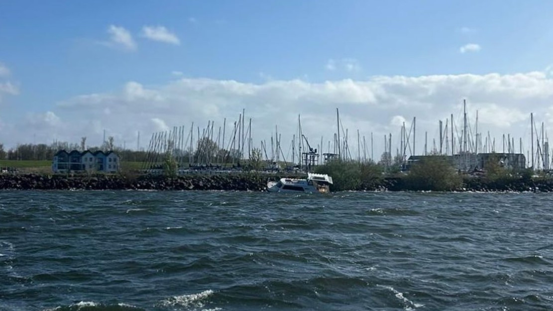 De boot van de man belandde uiteindelijk op de dijk. De KNRM heeft nog geprobeerd het vaartuig leeg te pompen, maar het vaartuig was te zwaar beschadigd en is geborgen.