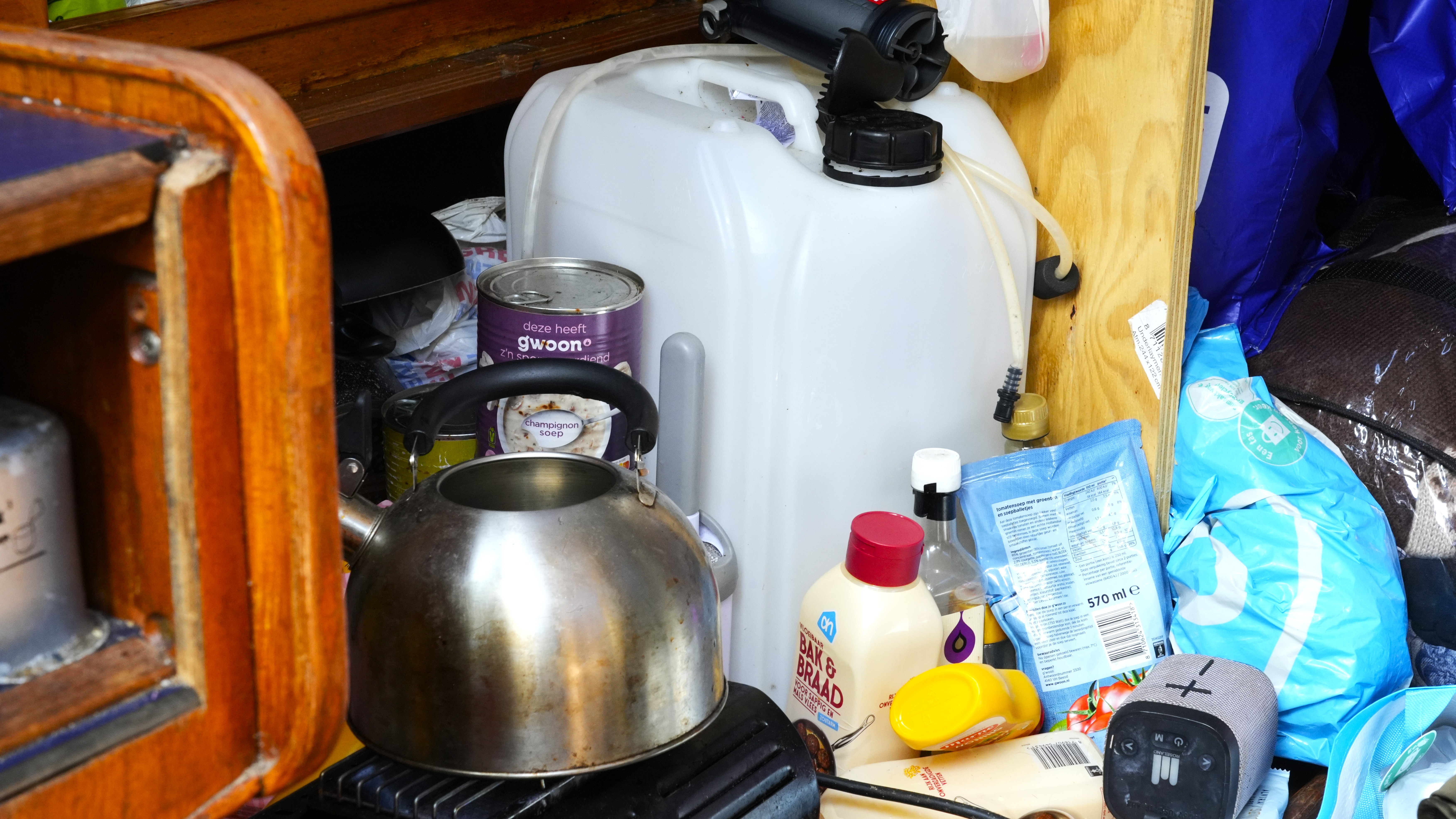 Op de boot draait alles om aanpassen. De ruimte is zo klein dat alledaagse handelingen in elkaar overvloeien. Koffie zetten gebeurt op een gaspitje, water komt uit een filter en elke beweging vraagt overleg.