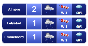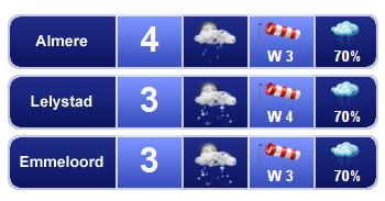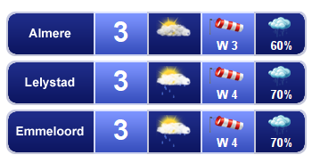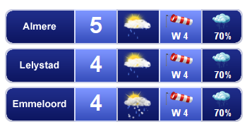 Vrijdagmiddag is het droog, maar het blijft over het algemeen wel grijs en bewolkt. De temperatuur ligt rond 3 graden en er waait een matige, in de open gebieden soms vrij krachtige noordoostenwind, windkracht 3 tot 5.