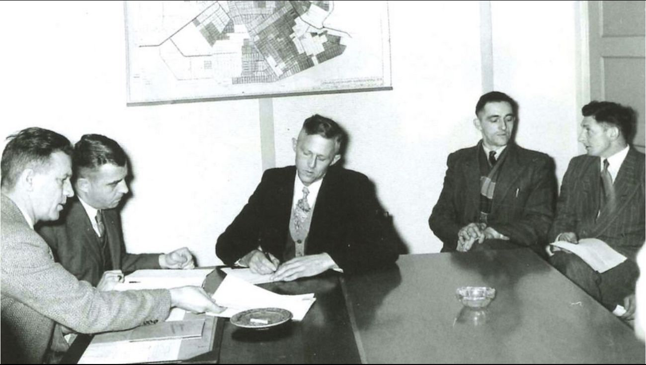 Een fruitteler tekent zijn pachtakte. Bron: Nieuw Land Erfgoedcentrum
