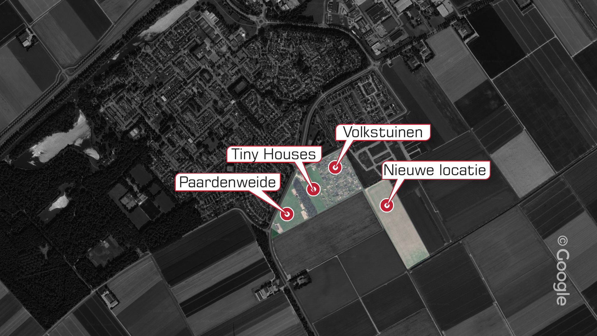 Op de nieuwe locatie, aan de zuidoostkant van het dorp, is er plek voor alle verenigingen. De tiny houses worden dan omringd door de volkstuinen en aan de rand van het perceel komt de paardenweide. Het verhuisplan wordt door de betrokken partijen positief ontvangen.