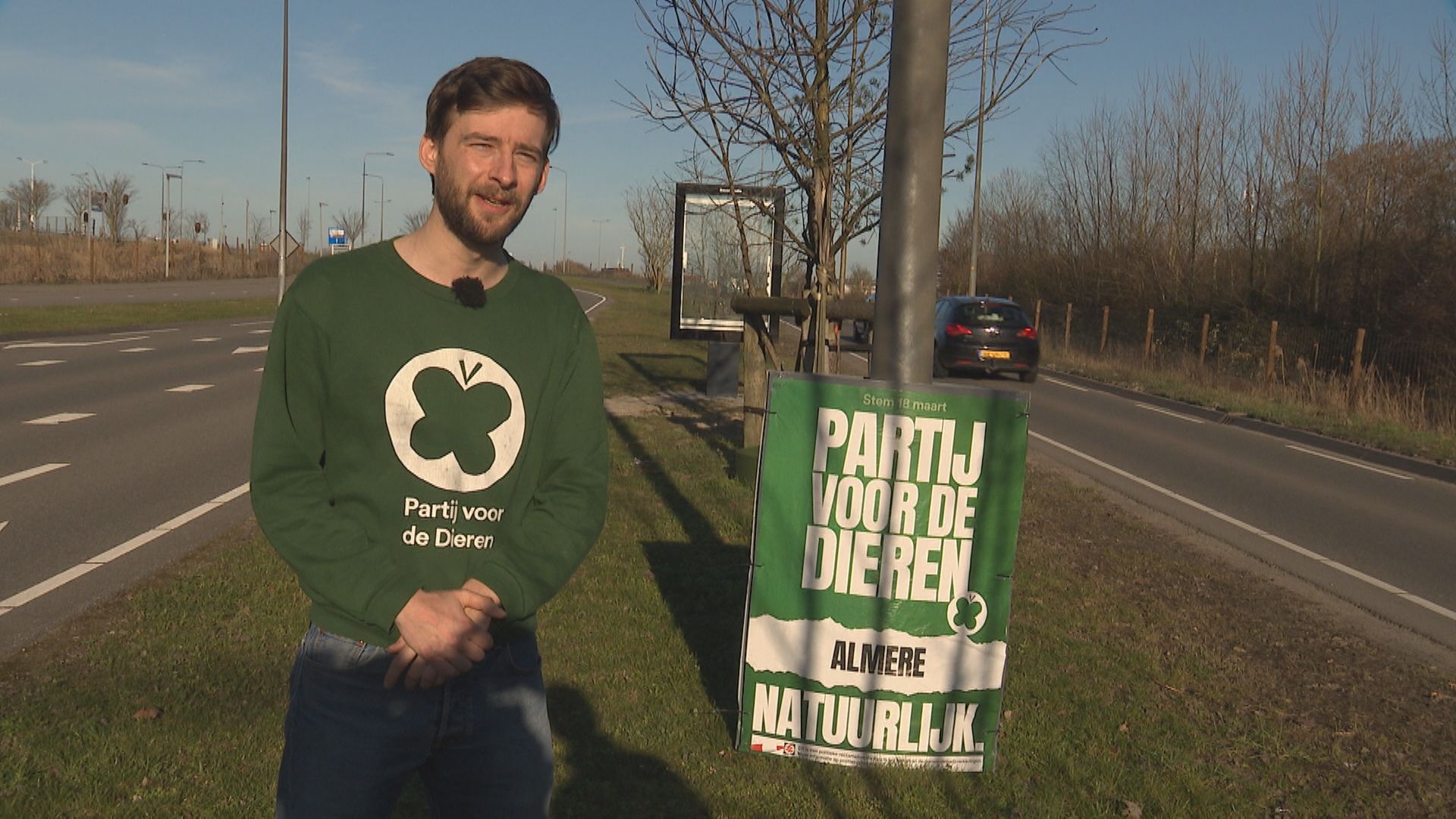 De Partij voor de Dieren heeft ongeveer 70 borden geplaatst. "Op die grote gezamenlijke borden hebben alle partijen een foto staan met het formaat van een postzegel", zegt fractievoorzitter Kjell van Wijlandt.