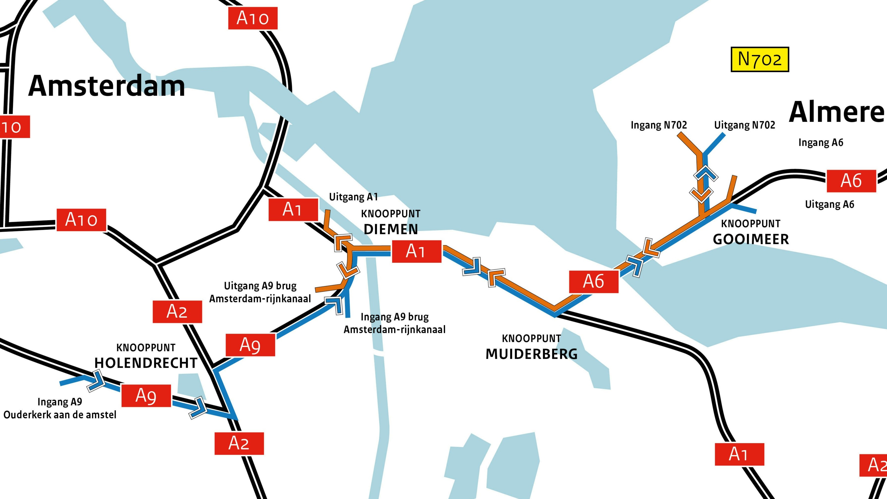 De verlengde wisselbaan tussen de Randstad en Almere is weer open. Dat meldt Rijkswaterstaat. Het verkeer kan vanaf vrijdagavond de wisselbaan oprijden bij Ouderkerk aan de Amstel tot aan Almere.