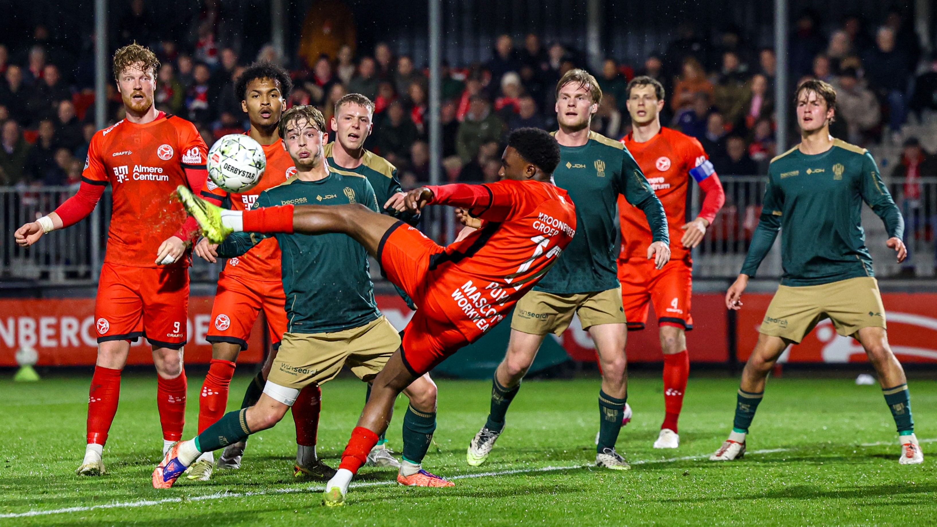 Hierna kregen de Almeerders goede kansen om de score verder op te voeren via De Nijs en Poku. Na 74 minuten leek Milan de Haan rechtstreeks uit een corner te scoren, maar zijn goal werd geannuleerd omdat de keeper volgens de scheidsrechter zou zijn gehinderd.